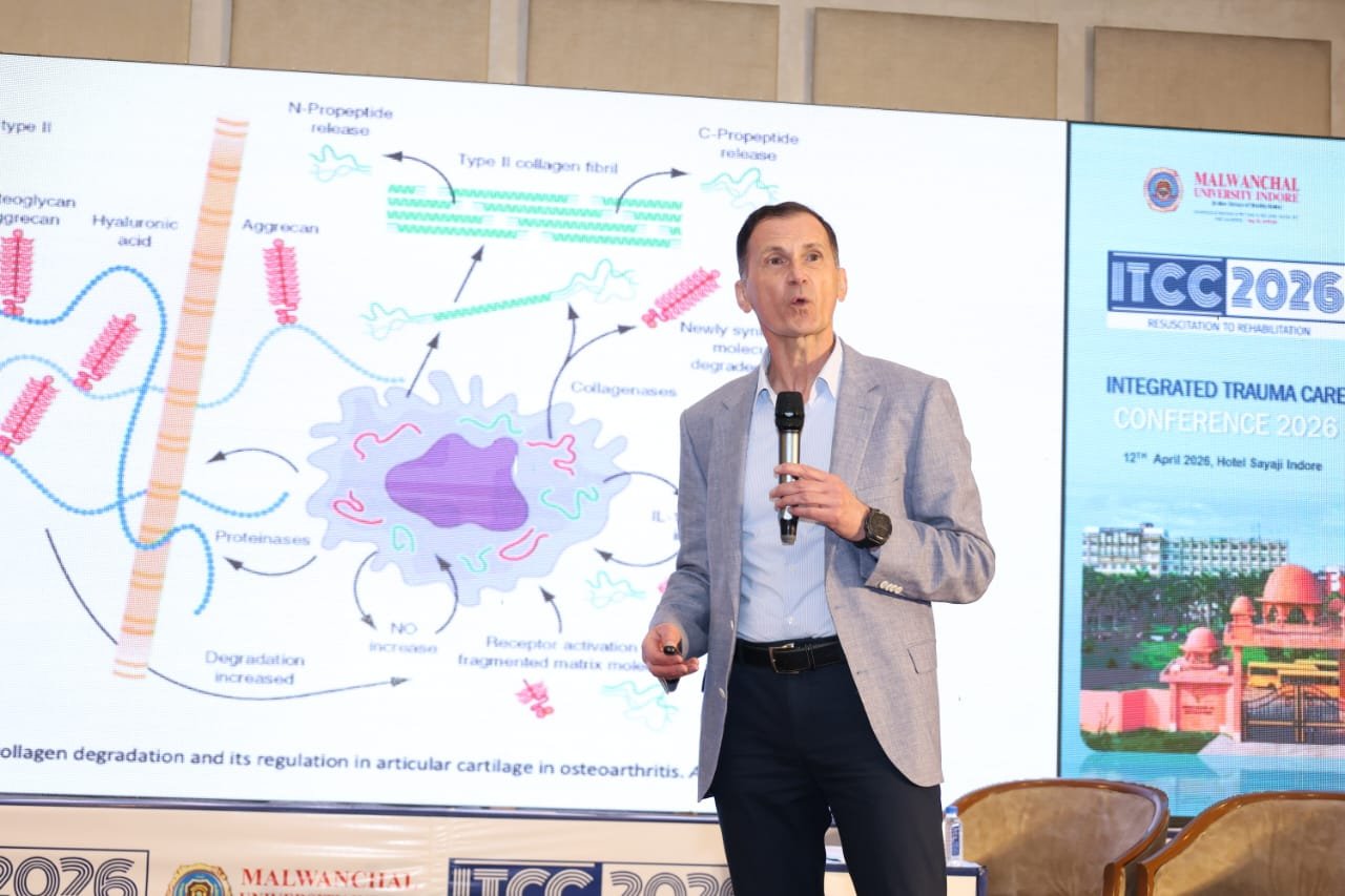 The conference commenced with a ceremonial lamp lighting in the presence of distinguished dignitaries including NMC Chairman Dr. Abhijat Chandrakant Sheth, Chairman of Mayank Welfare Foundation Shri Suresh Singh Bhadoria, Head of Orthopedics Lt. Col. (Retd.) Dr. Ajay Singh Thakur, Dr. D. K. Taneja, Dr. Deepti Singh Hada, Dean Dr. Sanjeev Narang, Vice Dean Dr. Pawan Bhambani, and Director Nursing Deepak Mishra, along with other esteemed guests. Lt. Col. (Retd.) Dr. Ajay Singh Thakur shared insights into the objectives and significance of the conference, while keynote speaker Dr. D. K. Taneja highlighted modern approaches in trauma treatment. Conference Chairperson Dr. G. S. Patel presented important trauma-related statistics. Internationally renowned scientist Prof. Dr. Dragan Primorac shared his expertise in trauma care and arthritis, along with insights from his 400+ international research publications, emphasizing the importance of advanced research in improving patient care.